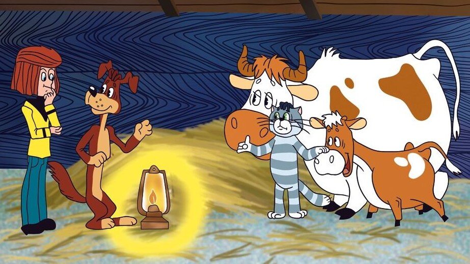 Кот Матроскин доит Мурку, но молоко белое, как пустота. Пьёт, причмокивая: «Вкусно. Нет. Да. Не знаю».