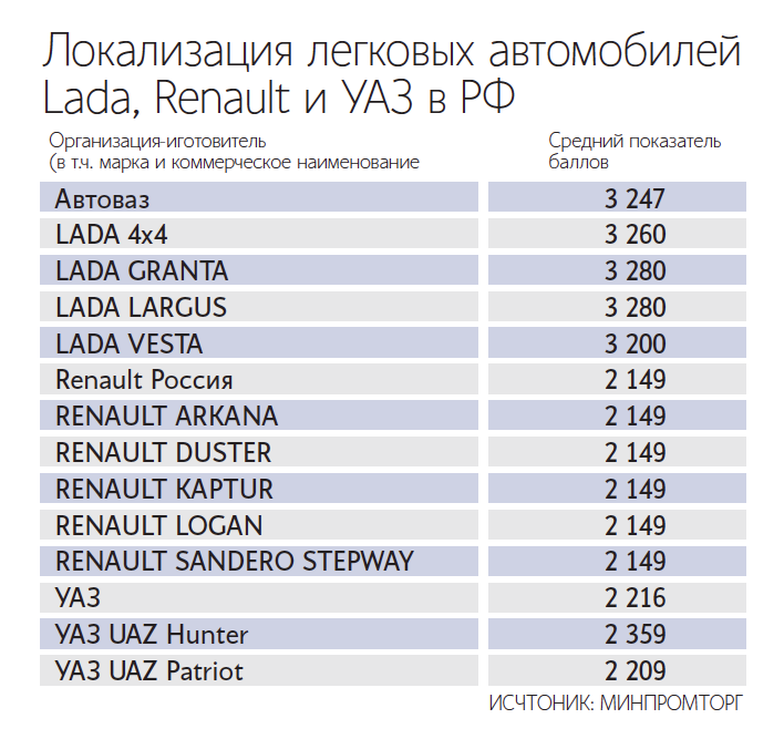 Полностью отечественный автомобиль должен иметь 7000 баллов. Шкала разработана Минпромторгом.