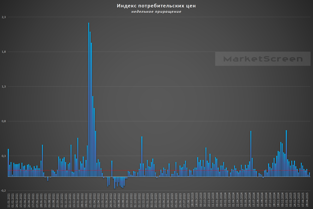 На неделе с 6 по 12 мая 2025 года инфляция составила 0,06%.