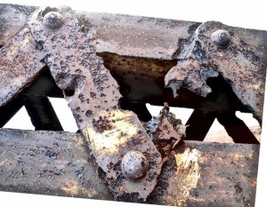Здесь скорее коррозия и разрыв из-за чуть большего локального напряжения.