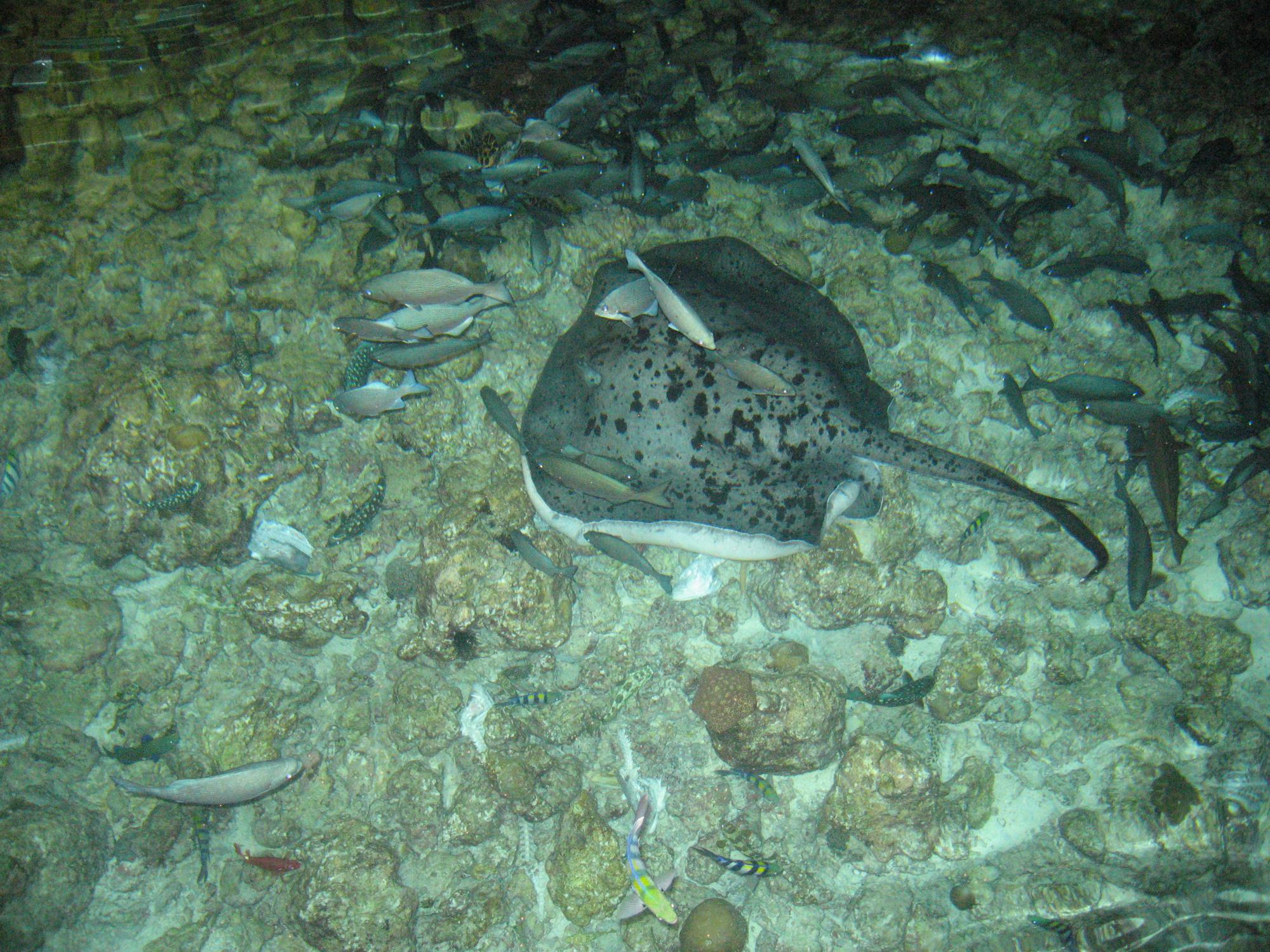 По вечерам кормление рыб – приплывали черепахи, огромные скаты, быстрые тунцы и много других рыбок. Целыми днями снорклил – рифы не такие красивые, как в Красном море, но зато под каждым камнем мурены, и в целом живности побольше. В джунглях удивительные летучие лисы (летучие мыши, размером с ворона), смешные ящерки. На пляжах полно крабов. Ездили на рыбалку (ничего не поймали), экскурсия на местный остров, лобстер-диннер (морепродукты на пляже, при свечах факелах), в СПА лечились от солнечных ожогов. Еда вся привозная, поэтому питание как-то не очень. Жарко, влажно, душно – решили, что один раз норм, но больше не поедем.