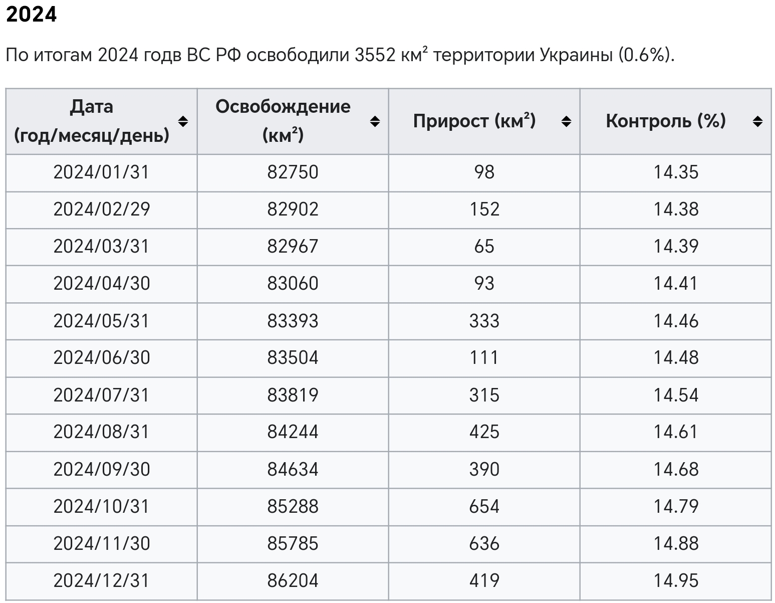 раз ссылаетесь на таблицу, так возьмите прирост украинской площади на 1000 км2 в Курской области за 9 месяцев