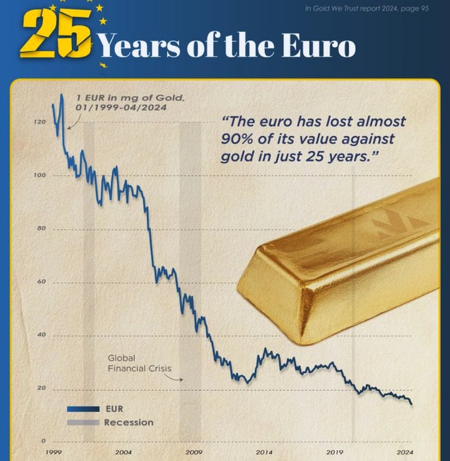 Хорошие новости. Золото подорожает до $25’000 долларов. Серебро - до $70. Биткоин - от $500 тыс. до $1 млн.