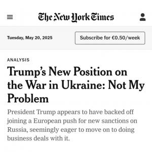 20 мая The New York Times: В течение нескольких месяцев президент Трамп угрожал просто выйти из изнурительных переговоров о прекращении огня между Россией и Украиной.