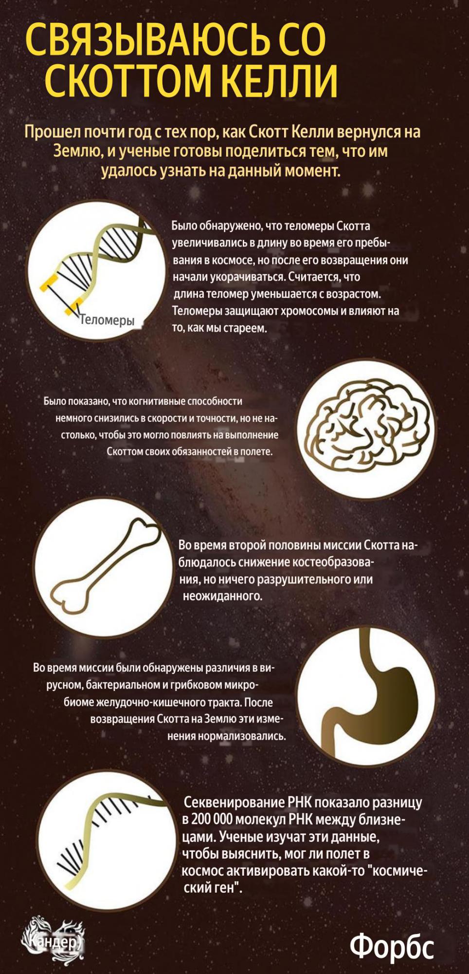Кроме того, на протяжении полета риски могут быть просто ниже, чем кажутся. Допустим, корабль окажется в совершенно чужеродной среде, но разве это значит, что экипаж будет в большей опасности, чем где-нибудь на Земле? Пожалуй, нет. Хотя в течение года, проведенного на орбите, у Скотта Келли возникало множество молекулярных изменений, по возвращении на Землю большинство показателей пришли в норму. Кроме того, многие молекулы попросту оказались устойчивее и изменились меньше, чем в случае, если бы Келли не покидал Земли. За год на орбите эпигеном и метилирование ДНК у Скотта претерпели меньше изменений, чем у Марка. Таким образом, при жизни на Земле может произойти больше эпигенетических изменений, обусловленных стрессом или просто старением, чем в жестко регулируемой и контролируемой среде МКС. Это говорит о том, что очень строгий контроль сна, приема пищи, физической нагрузки и взаимодействия с искусственной средой может способствовать более длительной и здоровой жизни.