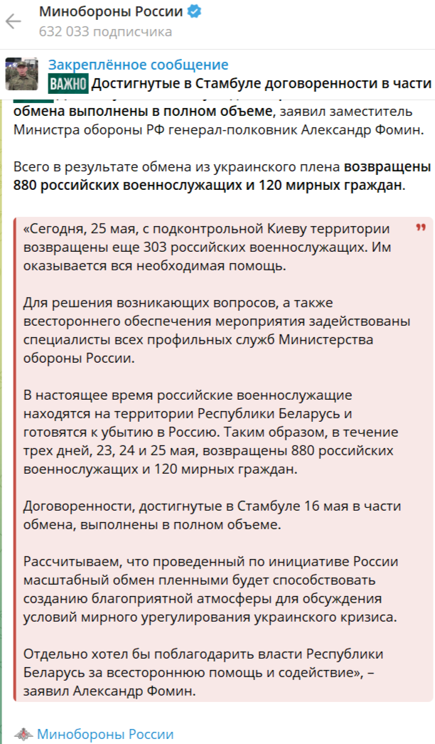 Однако переговоры в Стамбуле были 16 мая и обмен начался уже через неделю.