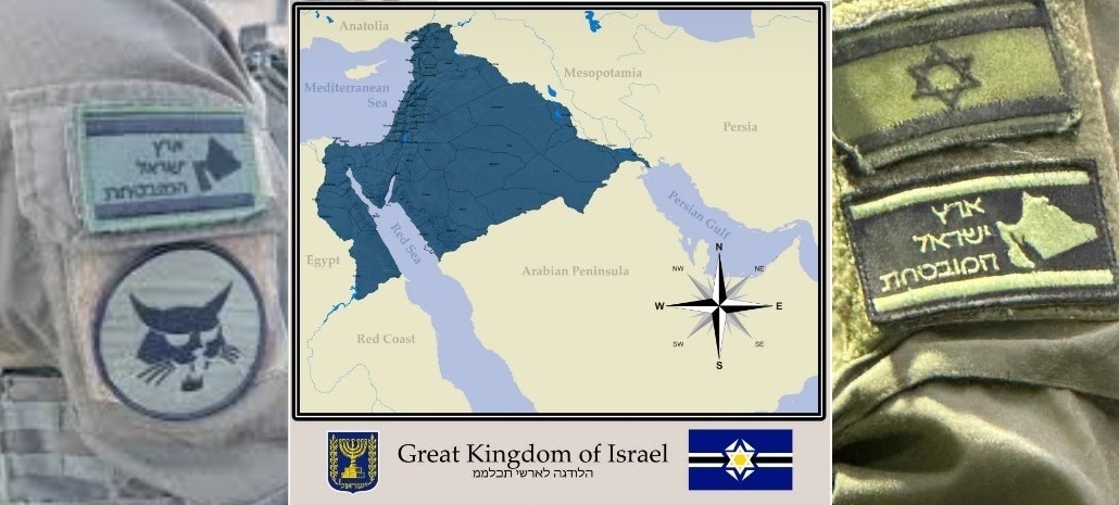 На солдатском шевроне вместо герба - древняя карта Большого Израиля