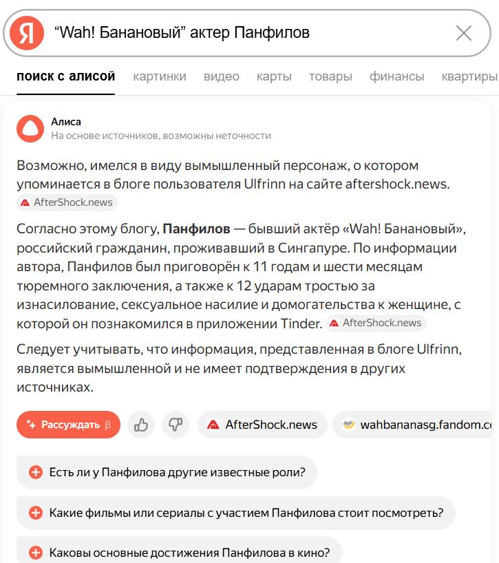 «Бывший “Wah! Банановый” актер Панфилов, российский гражданин, проживающий в Сингапуре, был приговорен к 11 годам и шести месяцам тюремного заключения, а также к 12 ударам тростью за изнасилование, сексуальное насилие и домогательства к женщине, с которой он познакомился в приложении Tinder.