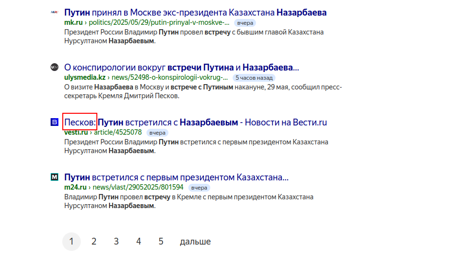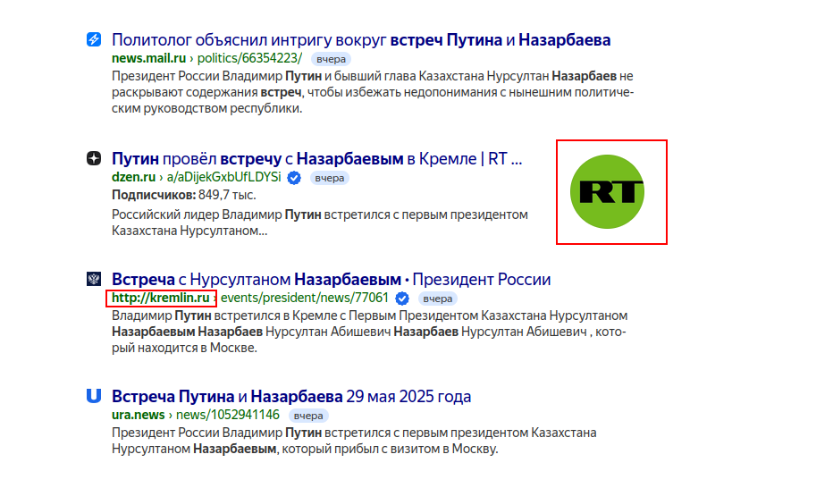 2. Все Российские информационные агентства и некоторые Казахские выложили информацию о встрече.