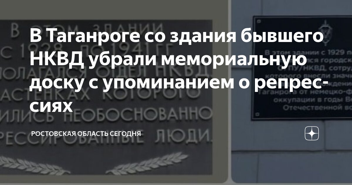 На здание по улице Петровской, 81, на котором располагалась мемориальная доска памяти жертвам репрессий, вернули долгожданную табличку, но с изменённой информацией. Раньше на ней говорилось, что в этом здании «томились необоснованно репрессированные люди», а сейчас упоминается, что работавшие в этом здании с 1929 по 1941 год сотрудники ОГПУ/НКВД «внесли значительный вклад в освобождение Таганрога от немецко-фашистской оккупации в годы Великой Отечественной войны».