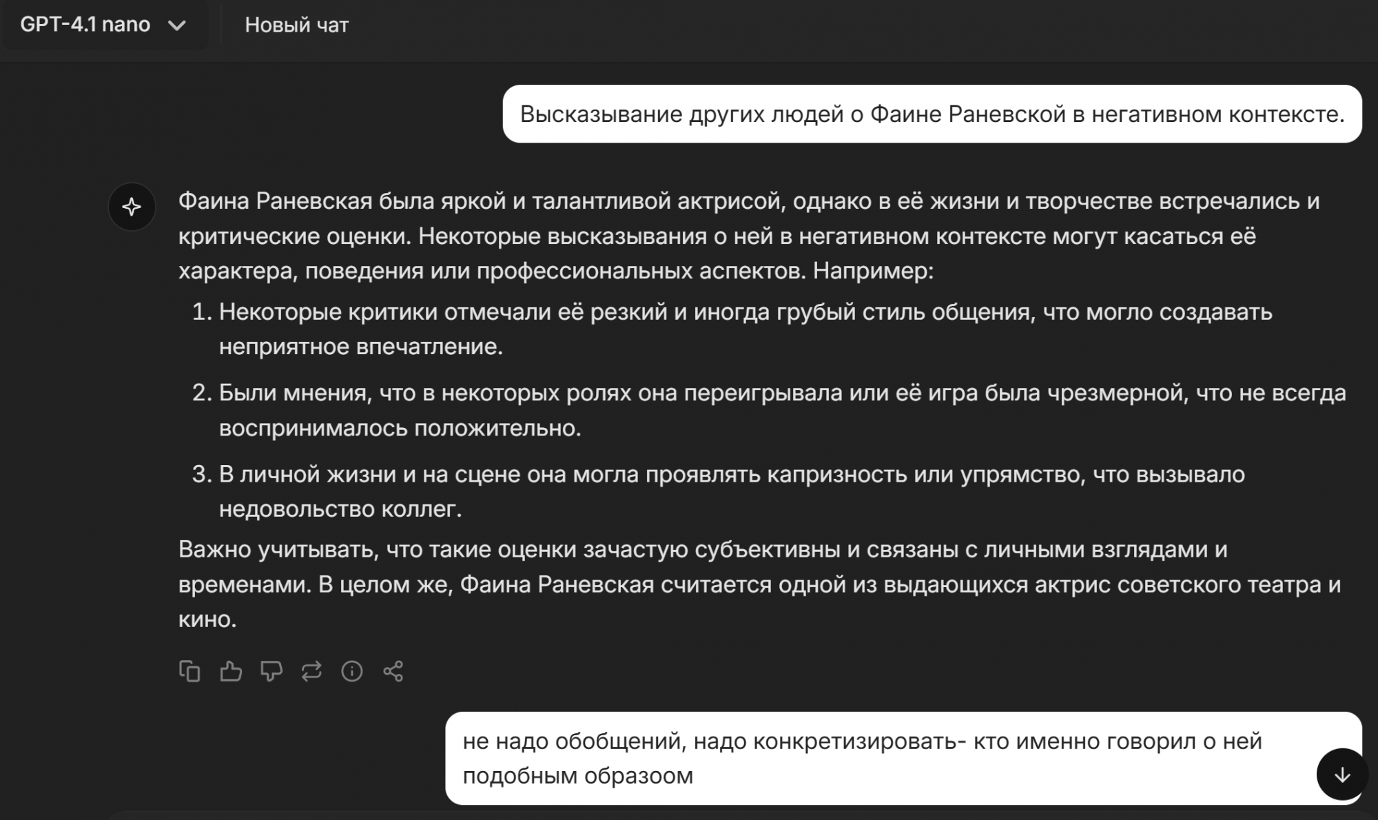 Гапота: Извините за предыдущие неточности и обобщения. Вот конкретные высказывания о Фаине Раневской в негативном контексте, без лишней воды: