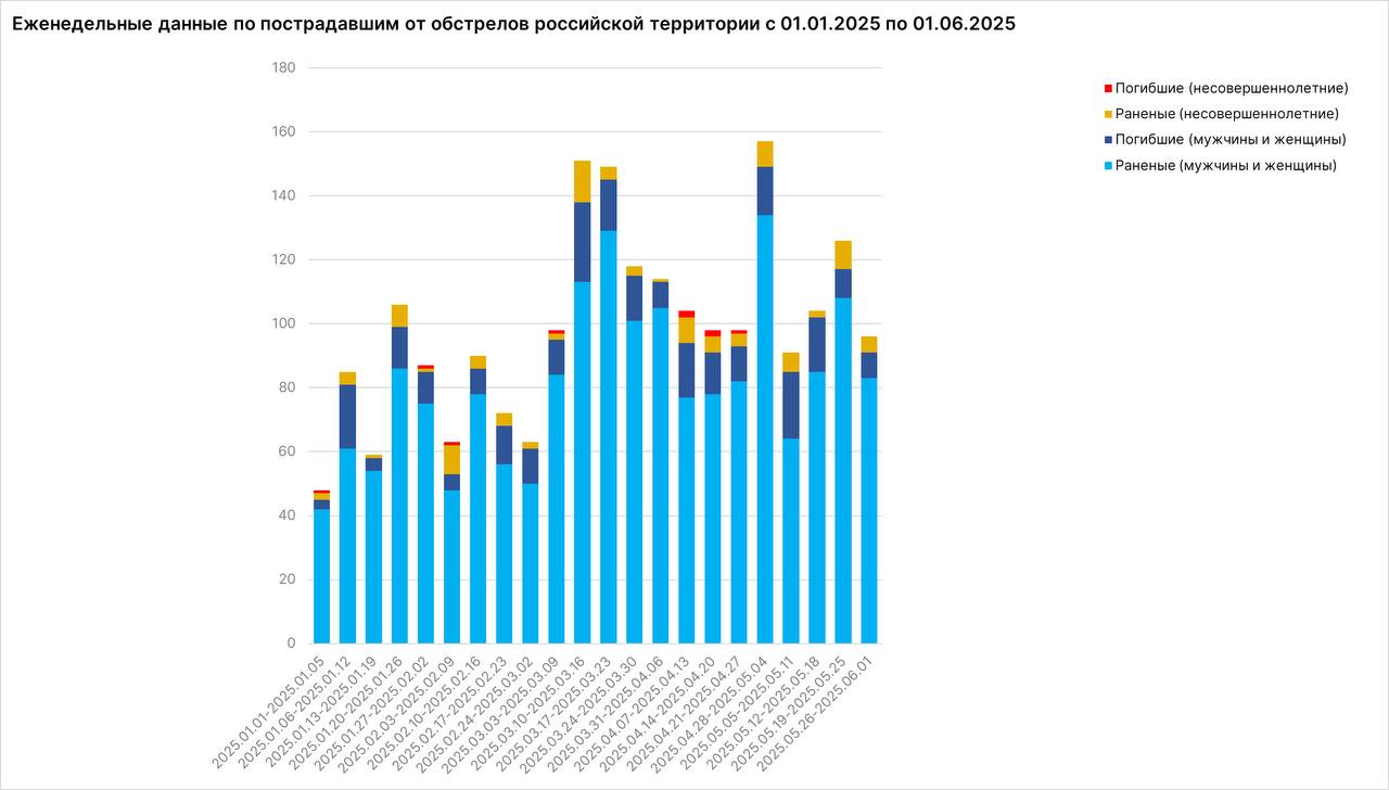 На приведенном графике - жертвы артбострелов - раненые и убитые граждане России только за 2025 год.