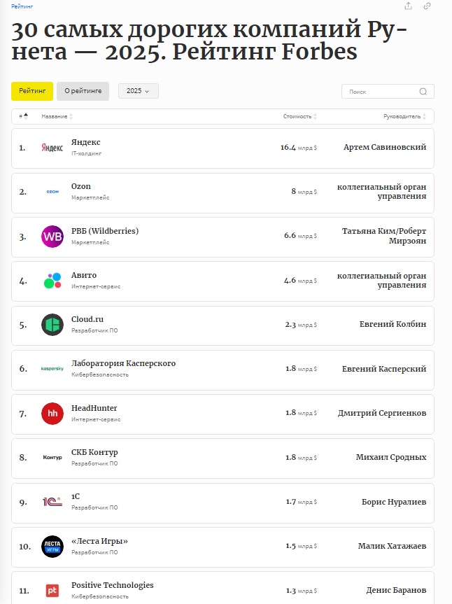https://www.forbes.ru/tekhnologii/531173-30-samyh-dorogih-kompanij-runeta-2025-rejting-forbes