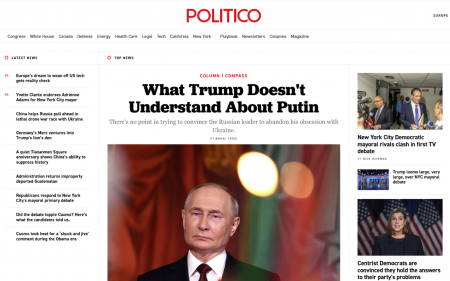 Заглавная статья в POLITICO сегодня: "Чего Трамп не понимает о Путине"