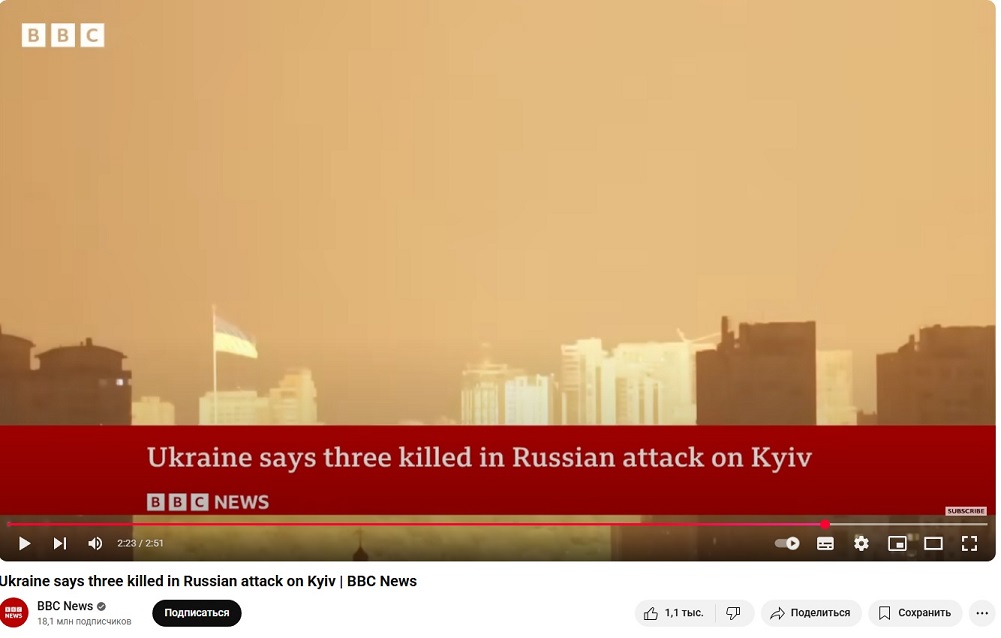 2. Ukraine says three killed in Russian attack on Kyiv | BBC News. https://www.youtube.com/watch?v=fDYBRMyMGPA