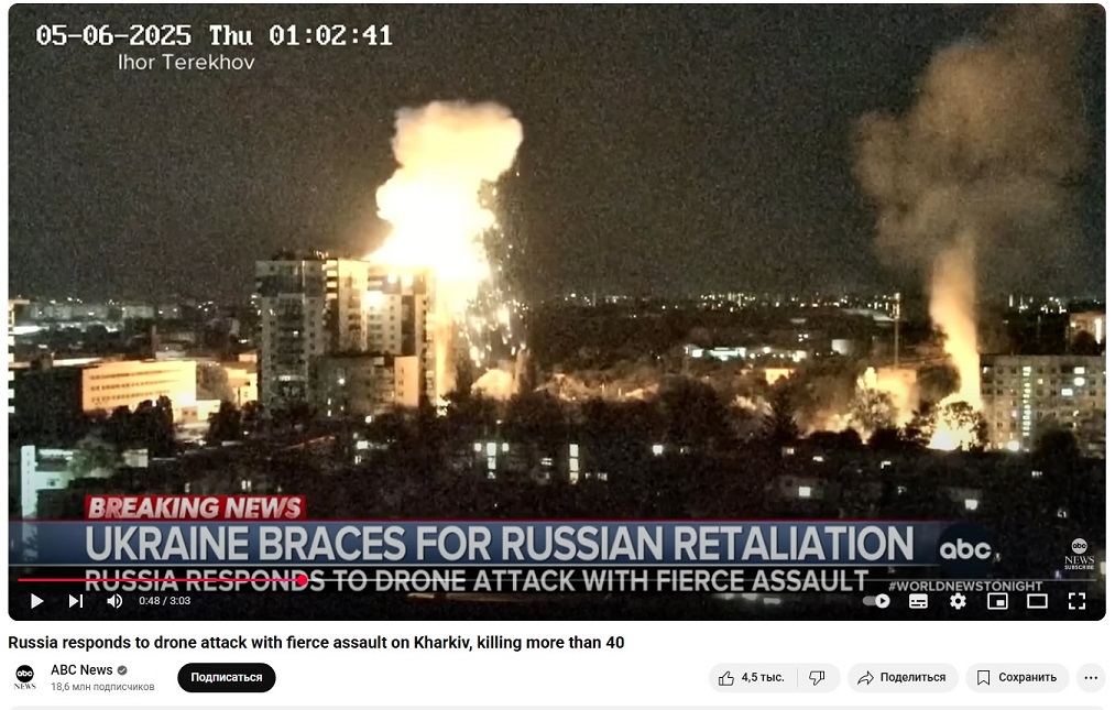 1.Russia responds to drone attack with fierce assault on Kharkiv, killing more than 40. https://www.youtube.com/watch?v=K9C_iJqVWhg