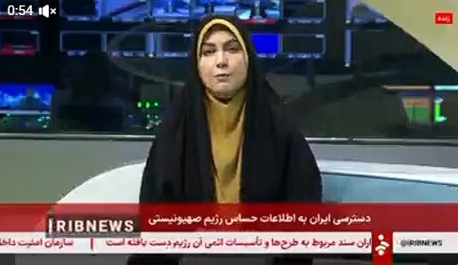 Государственное телевидение Ирана IRIB объявляет, что Иран получил несколько тысяч чрезвычайно важных файлов и данных израильской разведки, включая совершенно секретные документы, связанные с его программой создания ядерного оружия в Димоне.