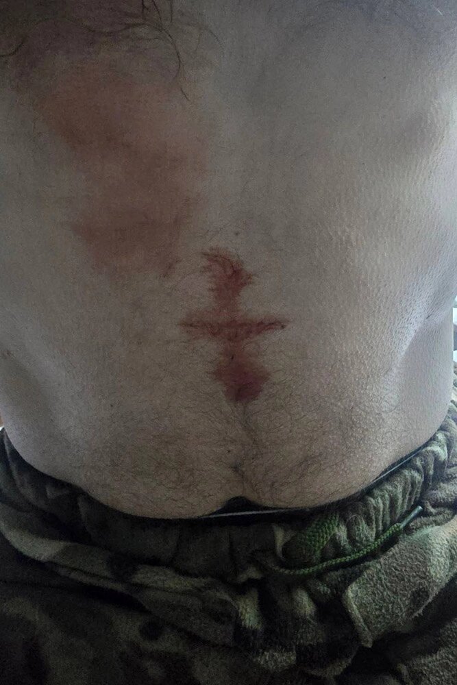 Кровоподтёк виде креста, у одного из пациентов Мифа. Фото из личного архива