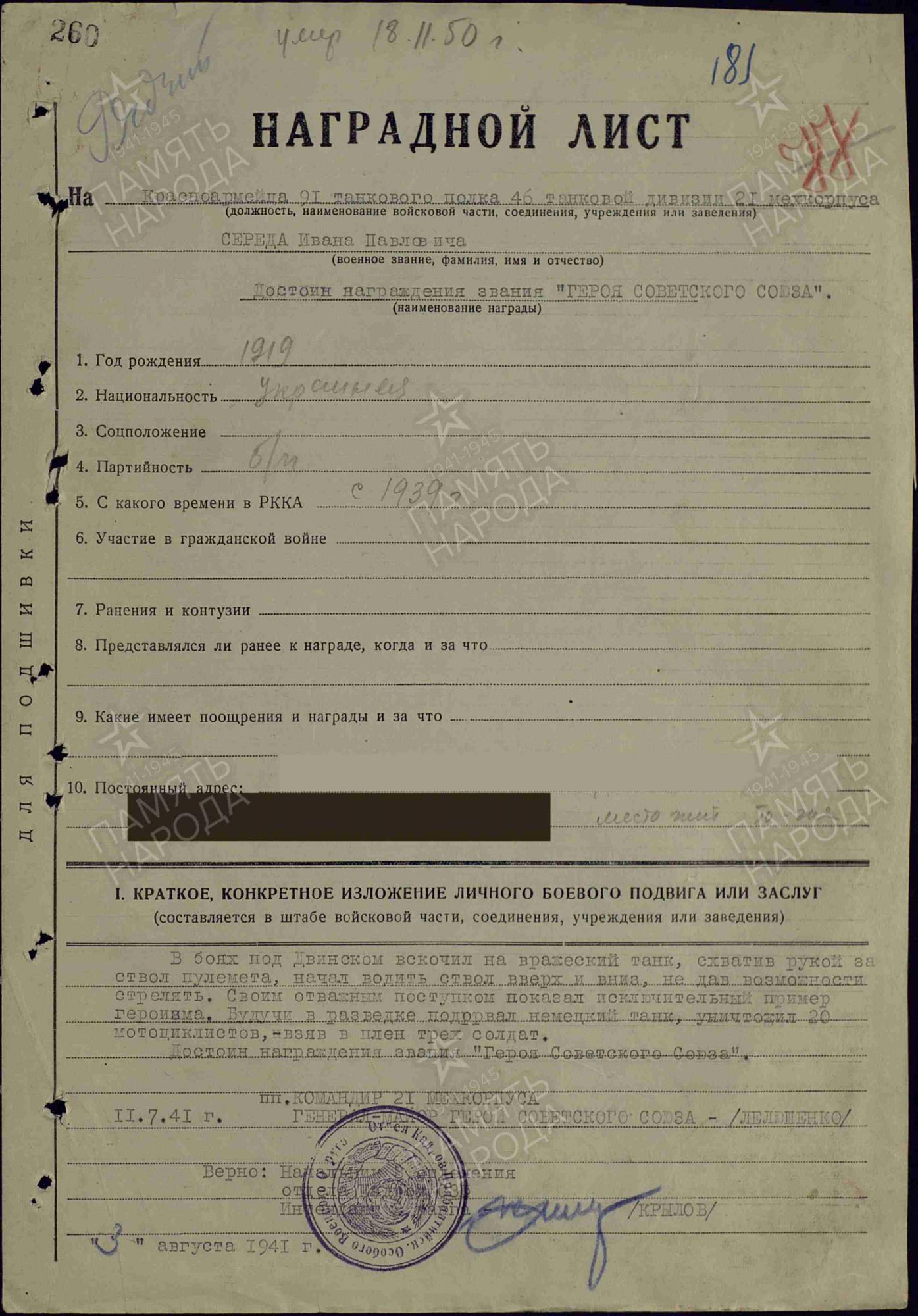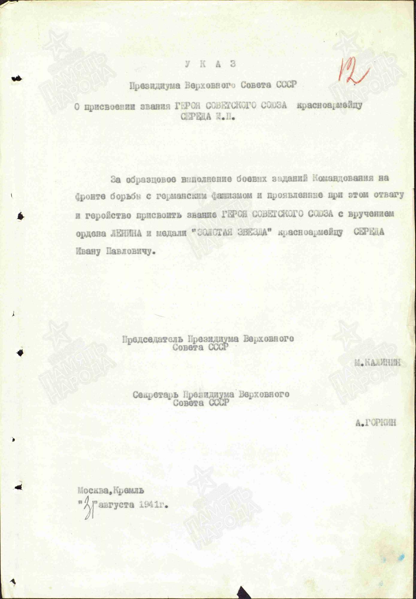 За свои подвиги Иван Середа, который родился в Александровке (ныне часть Краматорска), получил орден Ленина и звание Героя Советского Союза.