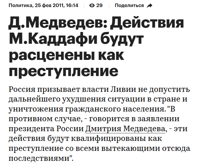 Это не оправдывает присоединение к общему хору "семерки" и одобрение бомбежек Триполи.