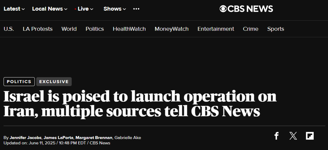 CBS News: Официальные лица США были проинформированы о том, что Израиль полностью готов начать операцию в Иране, сообщили CBS News несколько источников.