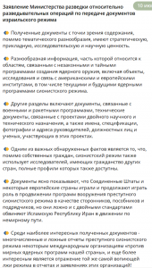 🔹 Среди наиболее интересных полученных документов - многочисленные и ложные отчеты преступного сионистского режима некоторым международным организациям «против мирных ядерных программ нашей страны», и еще более интересным является отражение той же самой вопиющей лжи режима в отчетах и заявлениях этих организаций!