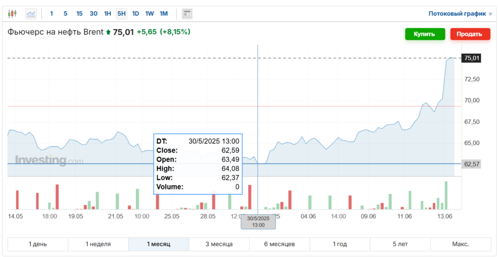 Снова вверх попрет. И чем больше нестабильность в этом регионе, тем выше будет цена. Фьючерс сейчас за 73 перевалил, а с утра и до 78 подпрыгивал.