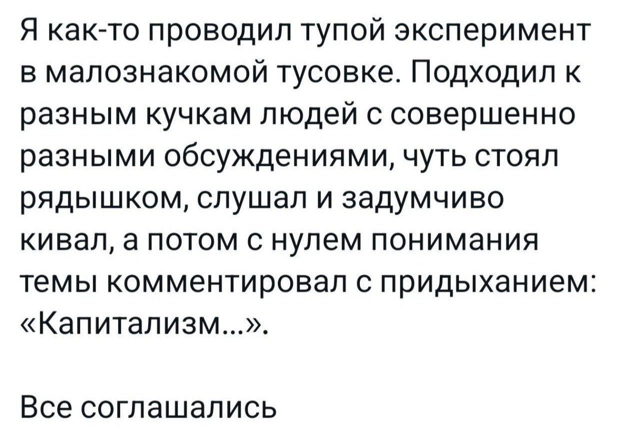 Я повторился единожды. Вы со своим "капитализмом", к месту и нет, повторяетесь изо дня в день. Я не то чтоб прям фанат капиталистического устройства мира, но хочу напомнить что именно капитализм, как способ организации общества, накормил людей досыта и обул-одел. Да, у него множество недостатков, но это скорее недостатки финансово-олигархической надстройки.
