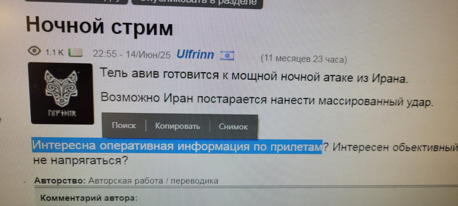 Интересна оперативная информация по прилетам? Интересен обьективный текстовый стрим или идти спать и не напрягаться?