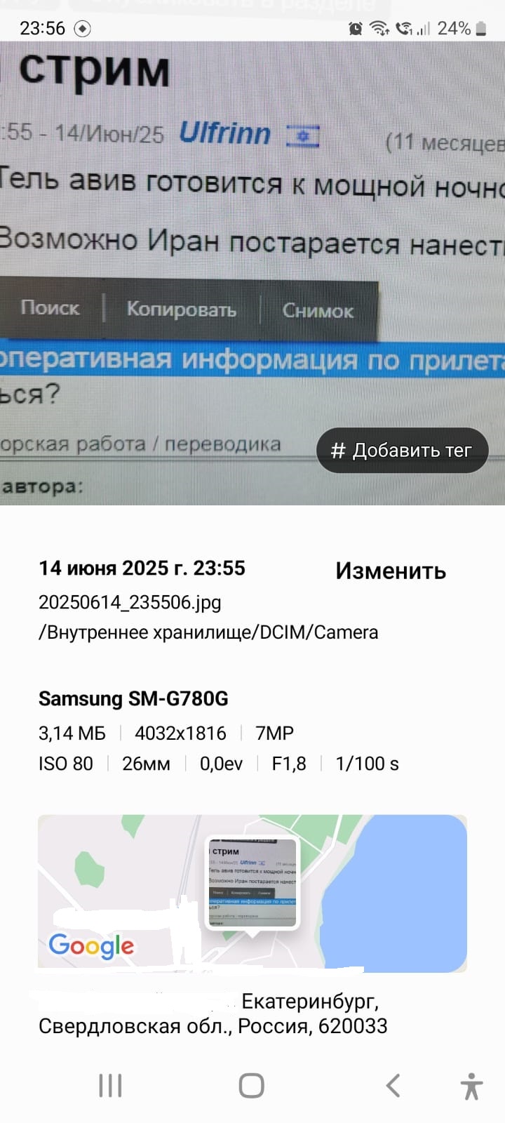 Так я фото сделал там вся данные сохранены и геопривязка в том числе и дата не менялась.