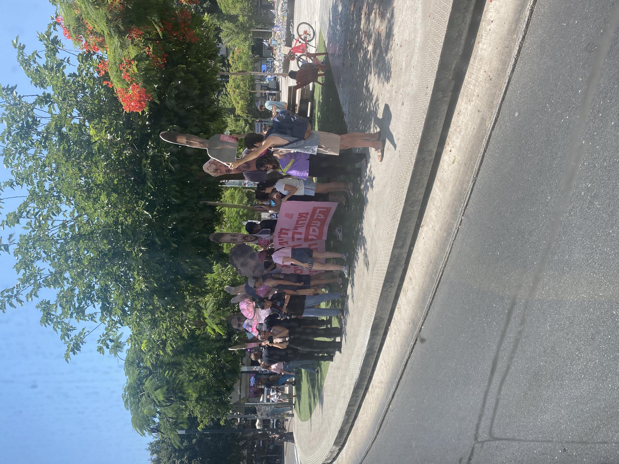 Как обычно пикеты. Это популярное место выйти с плакатами и покричать. За левых, правых, за и против. Там всегда что-то пикетируют. Как видите война даже не поменяла ритм для тех кто любит это дело