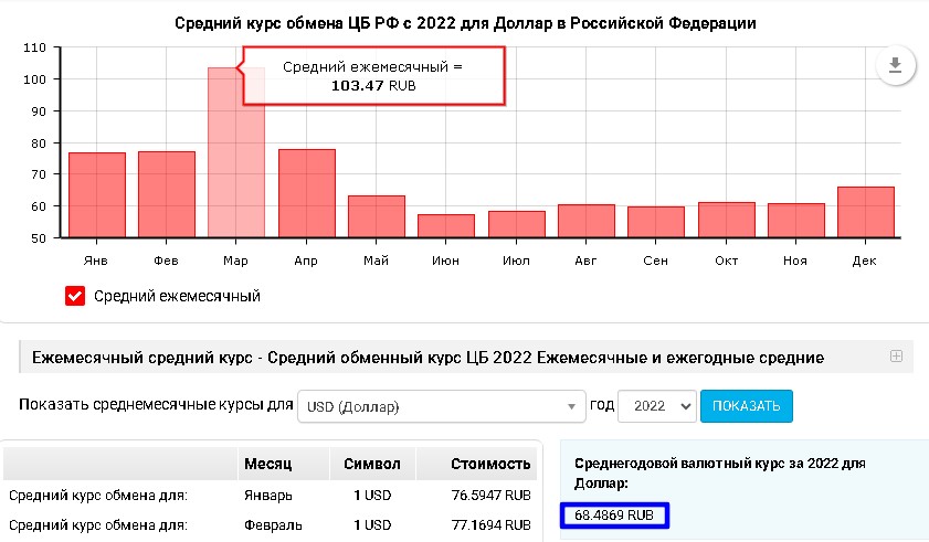 Среднегодовой курс представляет собой среднюю арифметическую из средних месячных обменных курсов.