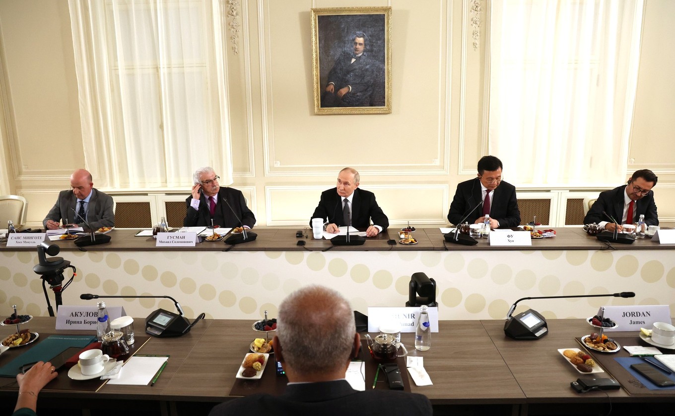 Прежде всего для меня большая честь: мне поручено, как представителю принимающей стороны, агентства ТАСС, модерировать эту встречу. И мои первые слова благодарности – Вам, Владимир Владимирович, что Вы откликнулись на нашу просьбу. Кстати, это уже девятая Ваша встреча в таком формате.