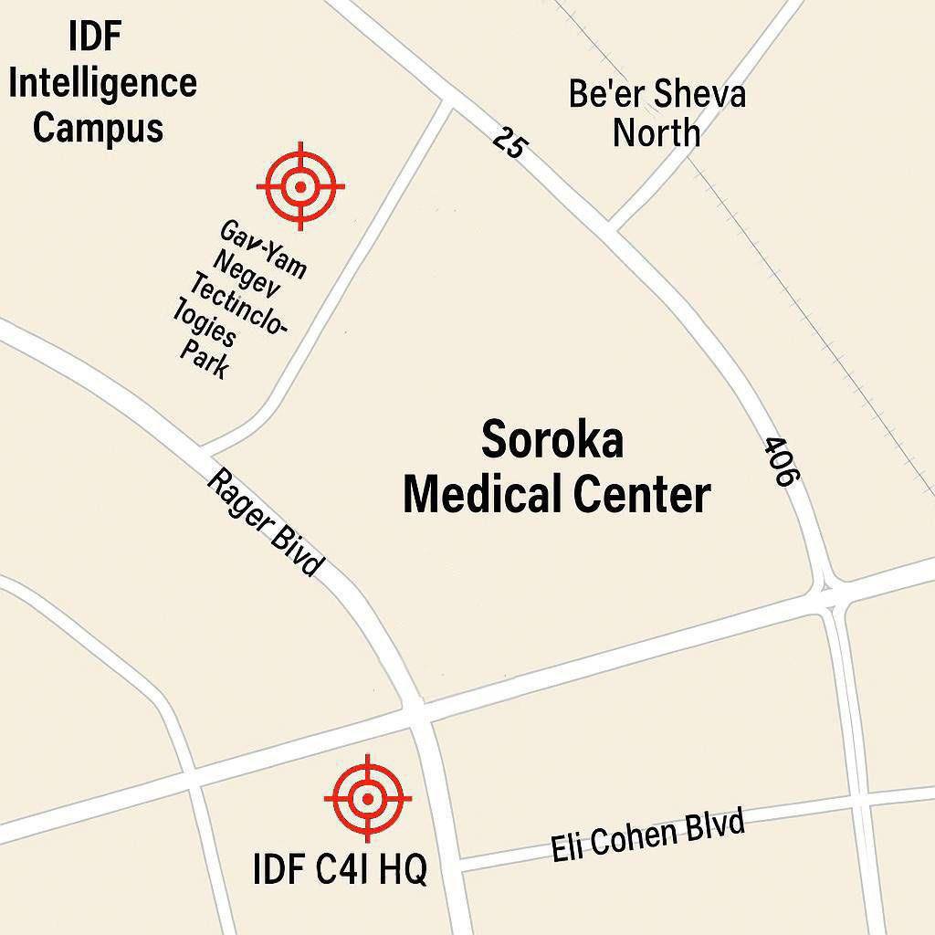 Через дорогу от госпиталя военный объект "Штаб связи, управления и разведки Армии Обороны Израиля IDF C4I HQ" (c) ТК Zergulio, там и карта есть.