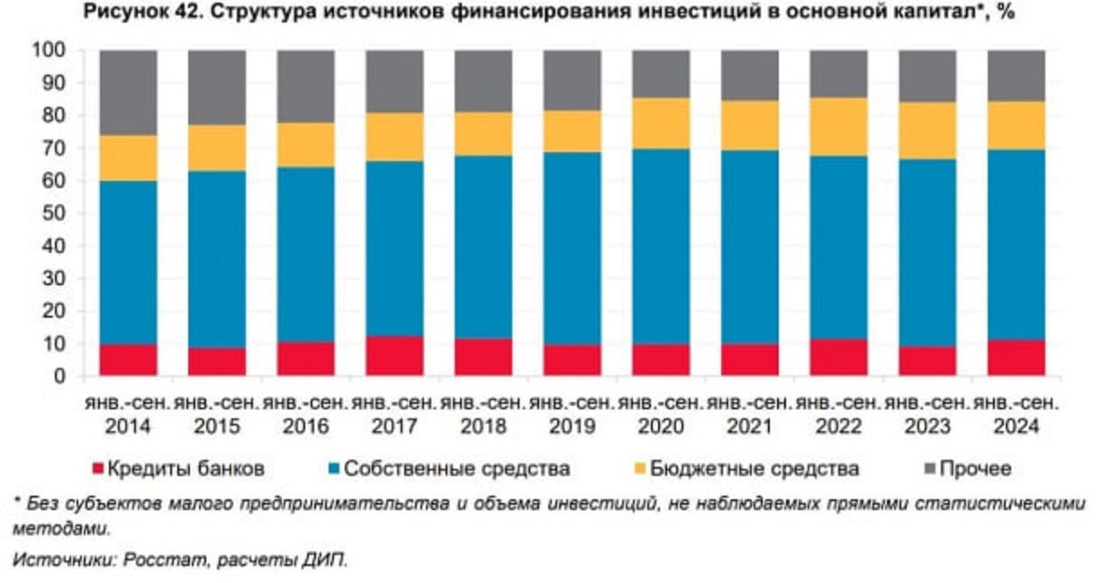 Даже не сомневайтесь. На приведенном вами замечательном (без иронии) графике почти всё кроме собственных средств является кредитами. Бюджетные - невозвратными кредитами. Кстати, суть их - компенсировать недостаток кредитов тем отраслям, которые государство считает ключевыми. Кстати, отпуск материалов с постоплатой и все отсрочки платежей по сделкам - это тоже кредиты. И кстати показатель здравия экономики. В 90ые "по предоплате" не работал почти никто. Да вы ролик-то смотрели?