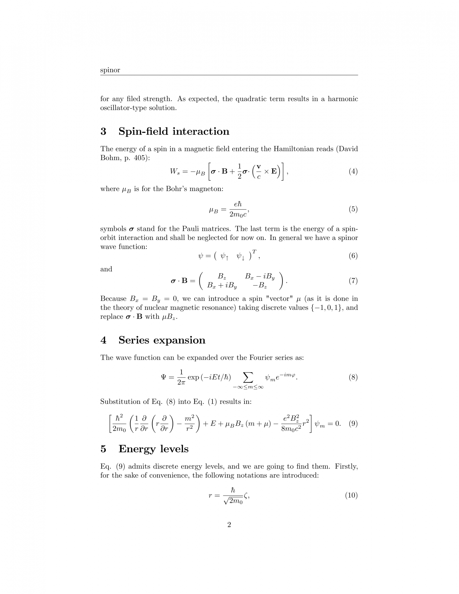 Уровни энергии получаются такие же, как и у гармонического осциллятора, что и ожидалось, в которые, впрочем, входит Ларморовская частота.