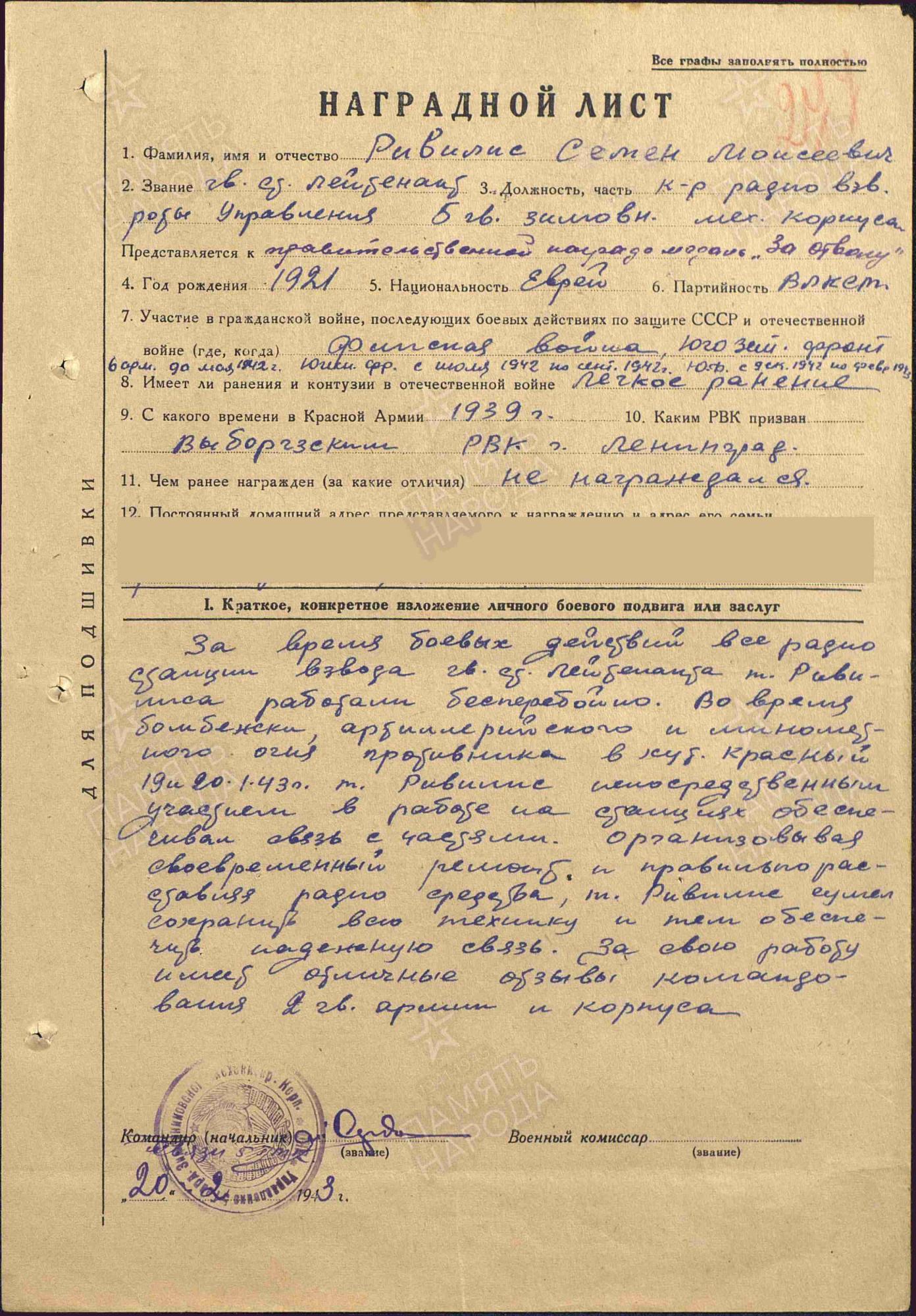 Как бы там ни было, по документам следы Ривилиса вели в нынешний Санкт-Петербург. Туда и полетел новый запрос. Но ответ из военкомата разочаровал: сведения о такой семье отсутствуют.