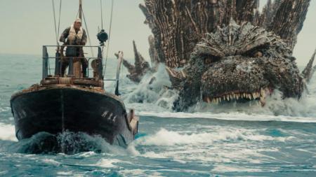 И тут, вдруг, откуда ни возьмись, на берег без предупреждения (разве что глубоководную рыбу пораспугав) причапывает Годзилла. Да, вот так просто, в начальной сцене...