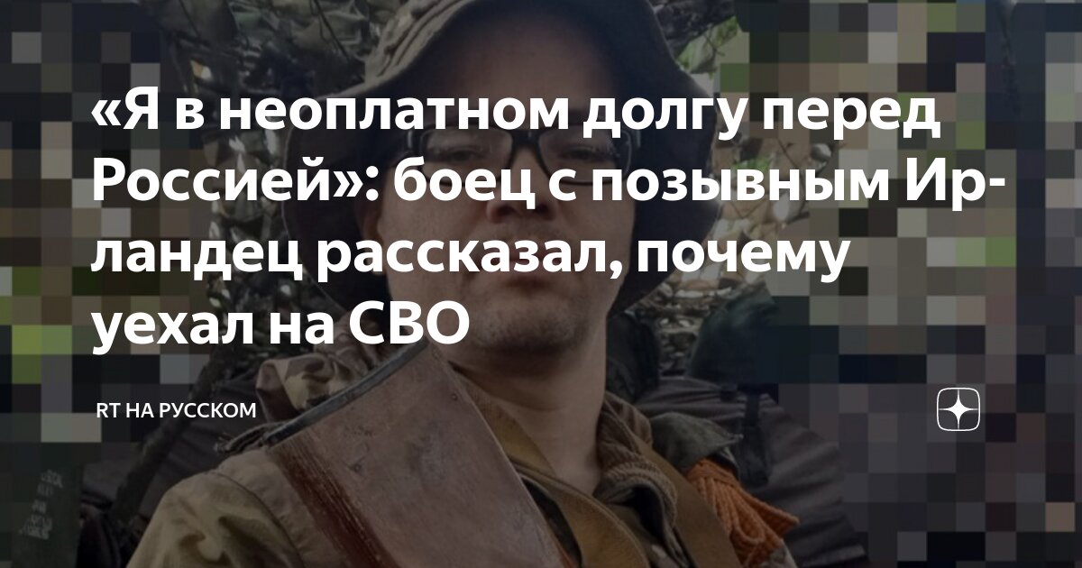 38-летний Эйдан Миннис с позывным «Ирландец» — один из первых британцев, о которых стало известно, что они служат на стороне России. В 2023 году о нём и его товарище Бене Стимсоне выпустило статью издание Daily Mirror. В родной стране их клеймят предателями, а в случае возвращения им грозит тюрьма. Эйдан Миннис рассказал RT, почему решил отправиться на СВО, как получил гражданство и за что благодарен России.