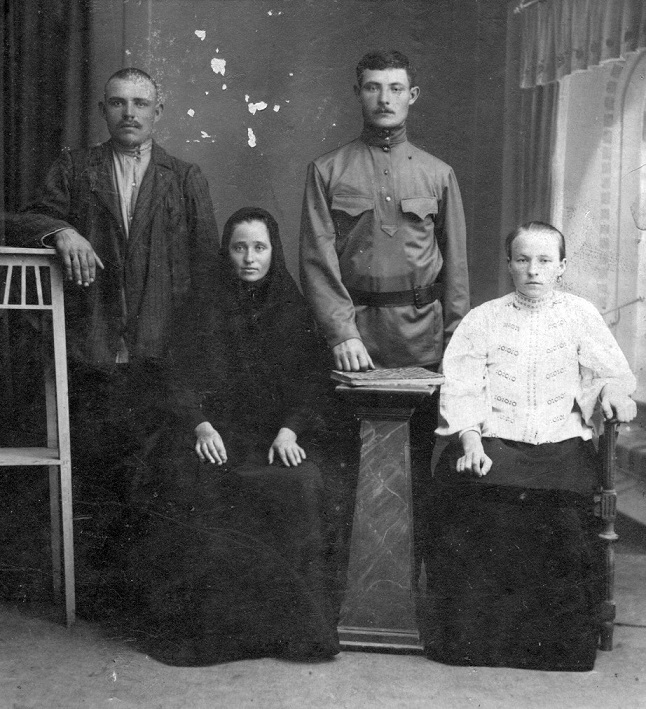 Вот фотография моего прадеда Семена (слева) и деда Николая. Перед ними сидят, соответственно, мои прабабушка Матрена и бабушка Любовь. Фото сделано примерно в 1914 г. в начале 1 м. войны.