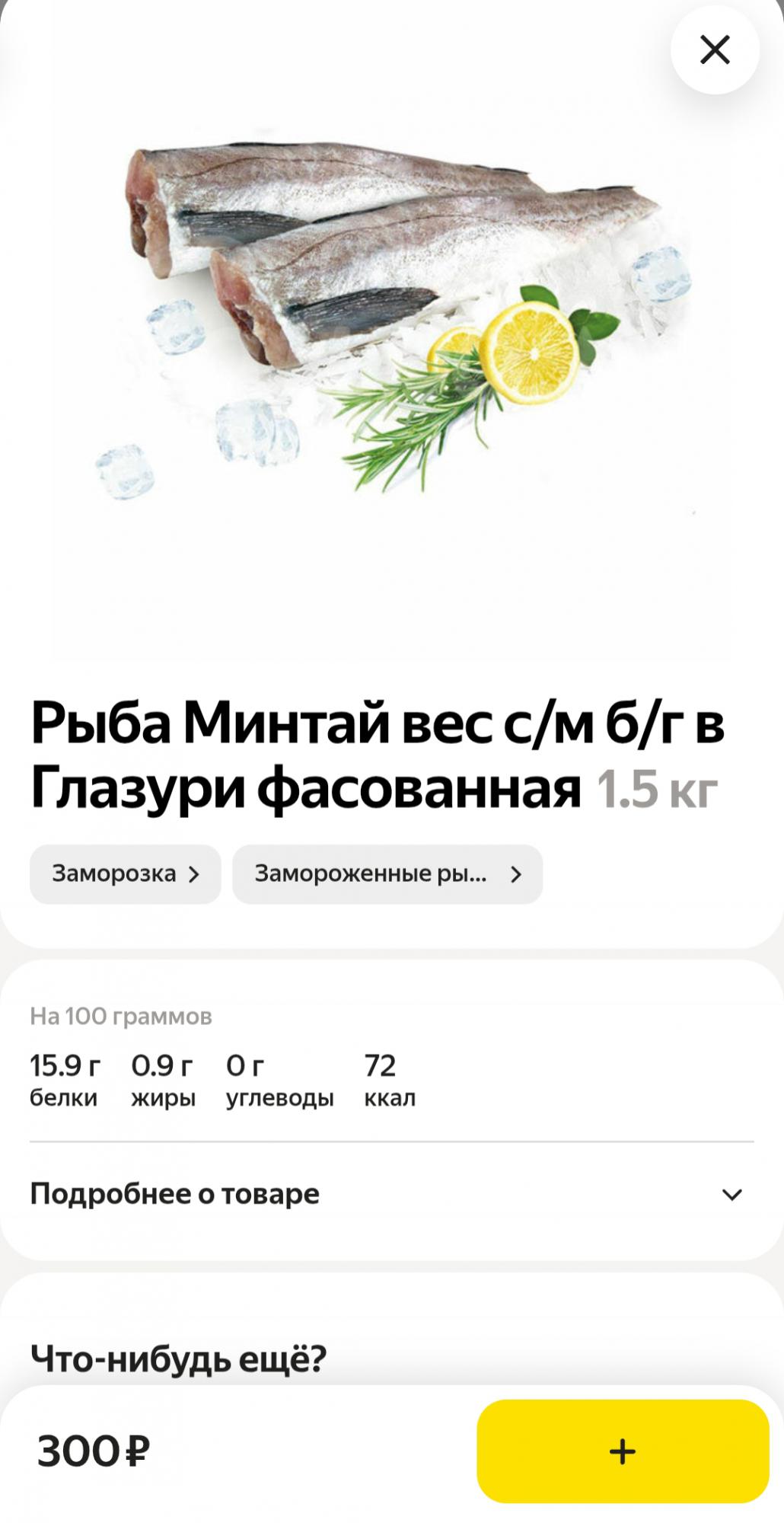 Но, я согласен с мнением, - Зачем покупать минтай, когда мяса полно по схожей цене, той же курицы и свинины например? Если рыбу и брать, для каких-то изысканных блюд и разнообразия, то свежевыловленную форель или стерлядь с рыбохозяйства, она там по 750 руб/кг. Часто с икрой.