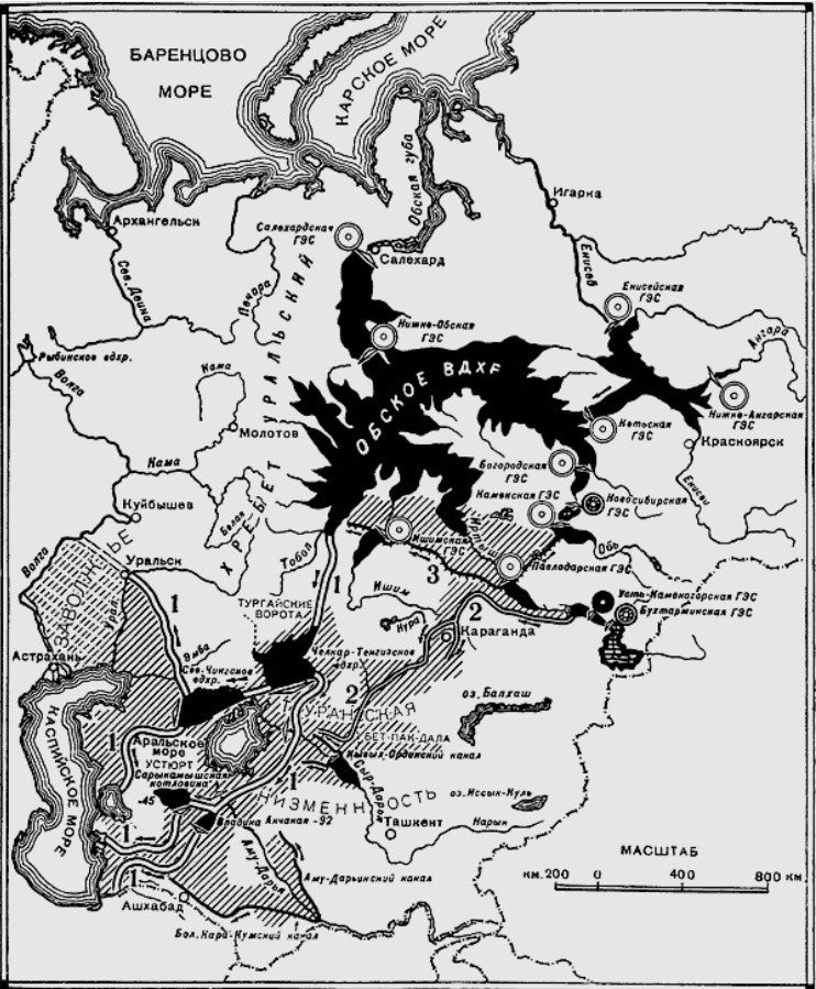 Один из проектов переброски сибирских рек, в Среднюю Азию и на Каспий, выглядел примерно так.