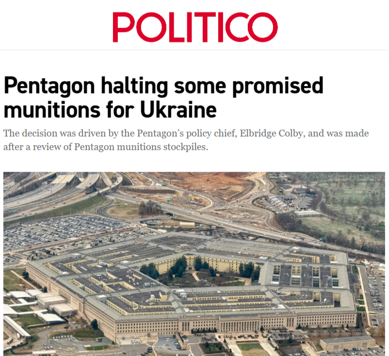 Решение было принято главой политического управления Пентагона Элбриджем Колби после проверки запасов боеприпасов Пентагона, которая привела к опасениям, что общее количество артиллерийских снарядов, зенитных ракет и высокоточных боеприпасов сокращается, сообщили три источника, знакомые с этой проблемой.
