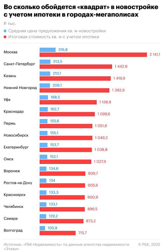 😳 2 000 000 рублей достигла цена квадратного метра в Москве с учётом ипотеки.