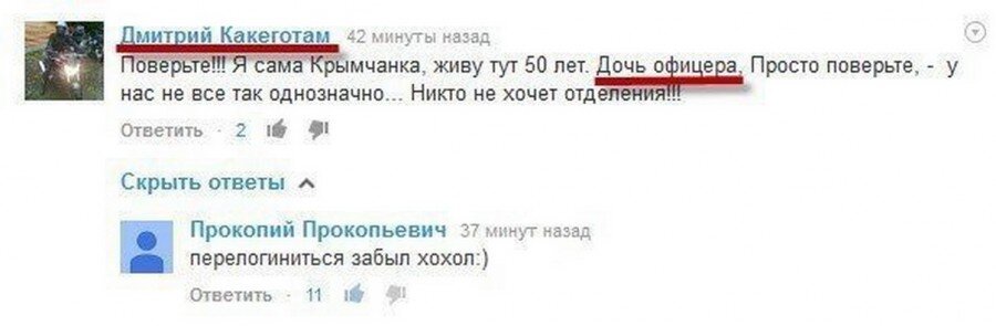 Вааще-то с точки зрения временного лага текст Мартьянова (или мою копипасту) даже при небольшом желании найти совершенно нетрудно. Мем был основан именно в 2014г. на персонаже "крымчанки - дочери офицера, здесь всё не так однозначно" прим. (с). А вот несерьёзные люди его даже разоблачали неаккуратно, обкакавшись по ходу пьесы: