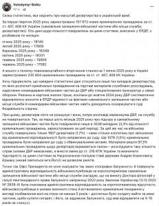Особое внимание хочу обратить на то, что в июне 2025 года количество уголовных производств, зарегистрированных по фактам дезертирства, уменьшилось по сравнению с предыдущим месяцем на 2,8 тысяч. Это-не случайность, а тенденция, о которой я предупреждал, вызванная изменениями, внесенными в ч. 2 ст. 24 Закона Украины «О воинской обязанности и военной службе» Законом Украины от 30.04.2025 №4392-IX. Если раньше в случае регистрации уголовного производства дезертира приостанавливалась военная служба и на основании выписки из ЕРДР дезертир исключался из списков личного состава, то теперь дезертиры считаются на службе и создают видимость укомплектованности воинских частей личным составом. В то же время, регистрация уголовных производств по факту дезертирства или СЗЧ (самовольное оставление части) осуществляется на основании материалов служебных расследований, которые командиры направляют в ГБР или специализированную прокуратуру с уведомлением о совершенном уголовном правонарушении. Таким образом, после внесения изменений в ч. 2 ст. 24 Закона Украины «О воинской обязанности и военной службе» командиры частей уже не видят смысла проводить служебные расследования и судиться с ГБР, требуя выписку из ЕРДР - для них теперь достаточно того, что о факте самовольного оставления подчиненным места службы они сообщают в военную службу правопорядка и старшему командиру. Из - за этого количество дезертиров будет расти, а количество зарегистрированных уголовных производств-наоборот, будет уменьшаться. Что, опять же, отнюдь не будет способствовать поддержанию правопорядка в ВСУ и других военных формированиях.