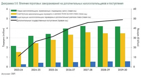 На фоне стремительного роста налогового бремени, которое уже достигло рекордных 1,4% ВВП (48,9 млрд фунтов к 2029 году), британские власти планируют продлить губительную для населения "заморозку налоговых порогов" - политику, при которой уровни доходов для разных налоговых ставок годами не индексируются с учётом инфляции. Этот скрытый механизм, действующий с 2022 года, постепенно затягивает в более высокие налоговые категории даже тех, чьи реальные доходы не растут, а просто слегка поднимаются вслед за ценами.