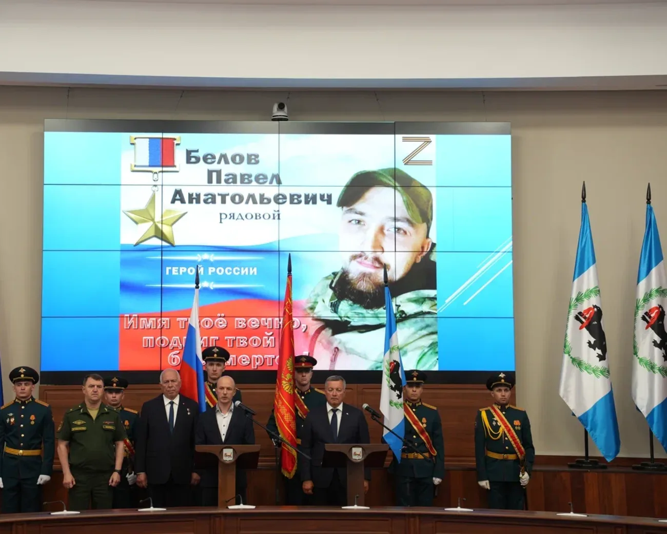 Указом Президента Российской Федерации от 21 мая 2025 года звание Героя России посмертно присвоено иркутянину, рядовому Павлу Анатольевичу Белову. Знак особого отличия – медаль «Золотая Звезда» и Грамоту о присвоении звания начальник Иркутского территориального гарнизона, генерал-майор Сергей Михайлов передал брату Героя Борису Анатольевичу. Вместе с родными и близкими Павла Анатольевича в церемонии приняли участие генеральный директор госкорпорации «Ростех» Сергей Чемезов и Губернатор Иркутской области Игорь Кобзев. Также присутствовали председатель Заксобрания региона Александр Ведерников и мэр Иркутска Руслан Болотов.