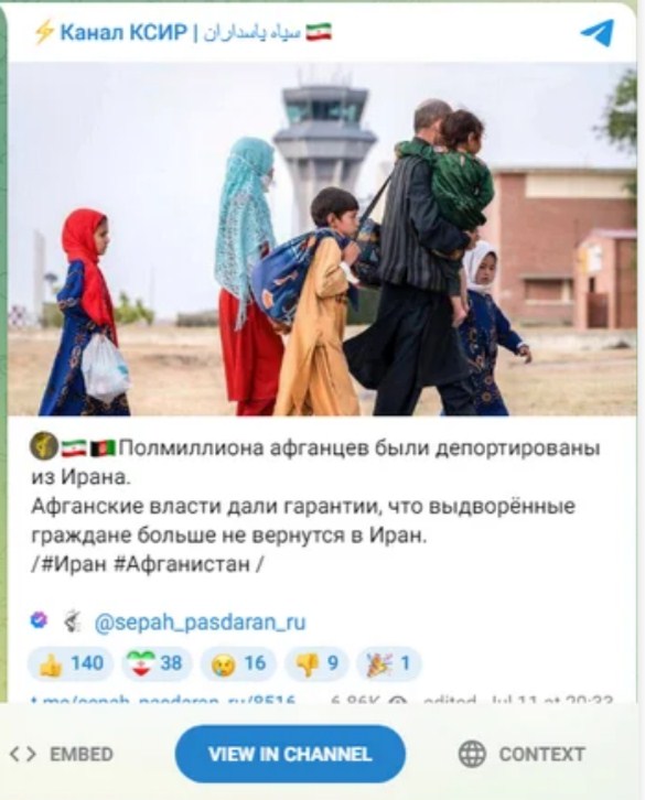 Полмиллиона афганцев уже депортированы из Ирана. Собираются депортировать всех.