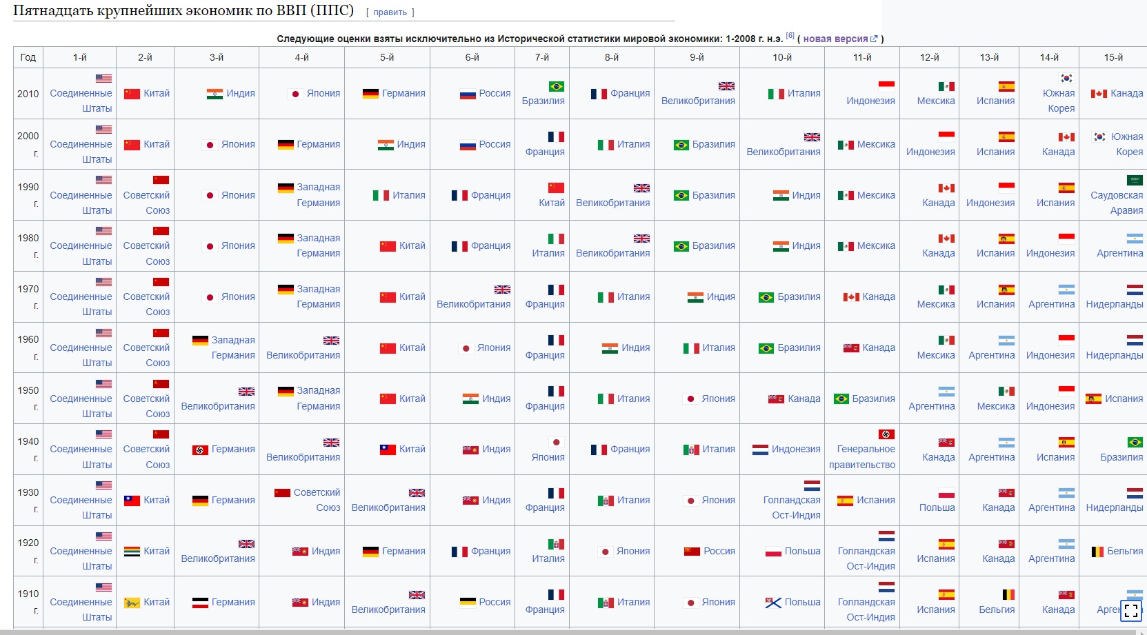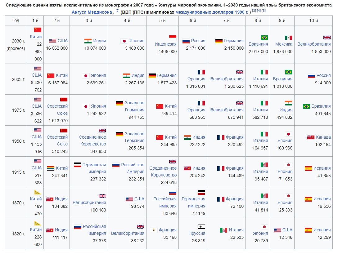 И что говорит ваша таблица? Что на втором месте в мире по ВВП/ППС Россия была только при СССР? Так это и так все знают.